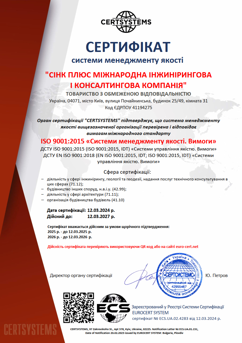 • ТОВ «Сінк Плюс Міжнародна Інжинірингова і Консалтингова Компанія» заснована в 2017 році.
